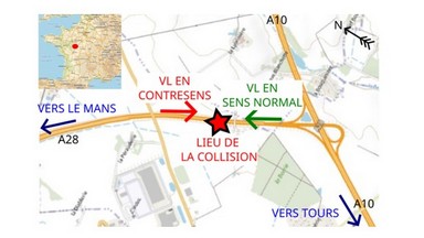 Novembre 2025, collision mortelle sur l’A28 entre deux VL dont un en contresens à Parçay-Meslay (37)